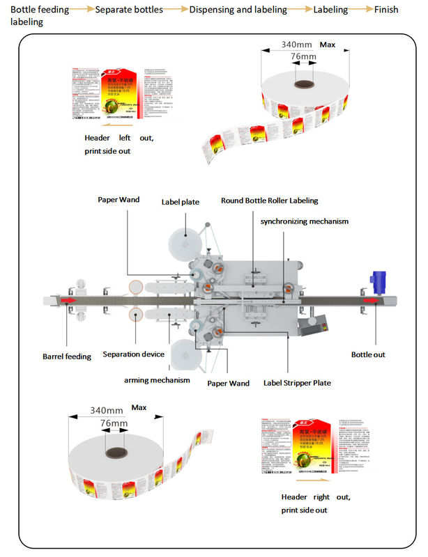 Adopción de detección fotoeléctrica, control PLC, funcionamiento del software de pantalla táctil, transporte, soporte de la botella, la botella es regulación de velocidad sin pasos, colocando el estándar con precisión;al mismo tiempo no tiene ningún objeto no etiquetado, sin etiquetado corrección automática, detección automática y otras funciones.